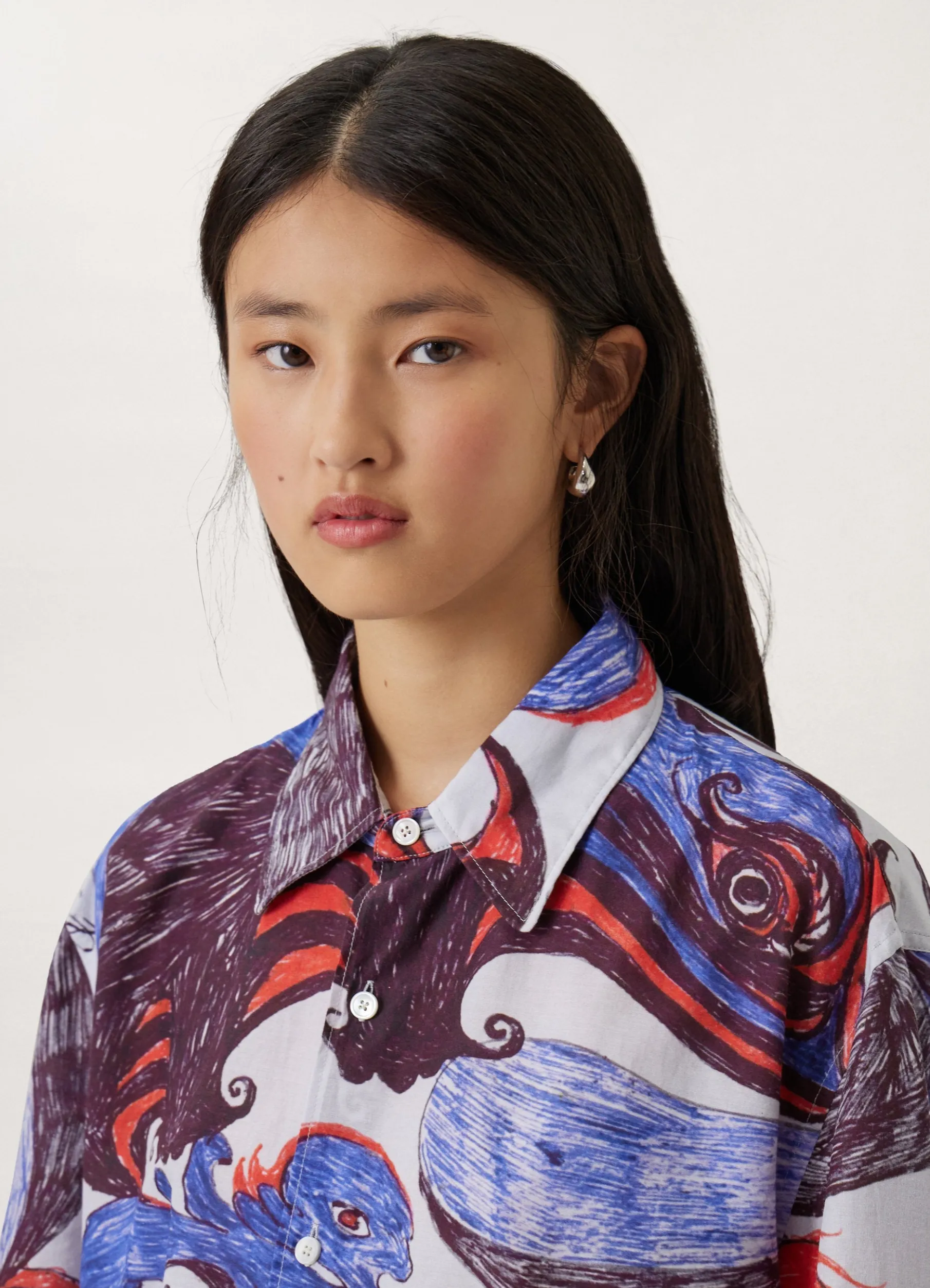 This Unisex Shirt Is Made Of An Airy Cotton With A Reproduction Of An Artwork By Indonesian Artist Noviadi Angkasapura, That Has Been Printed To Scale To Respect Its Integrity. It Has A Straight Fit With Short Sleeves, Its Soft Construction Accented By A Convertible Collar, French Placket And Slightly Rounded Hem. A Single Chest Patch Pocket And A Back Yoke Complete Its Classic Details.