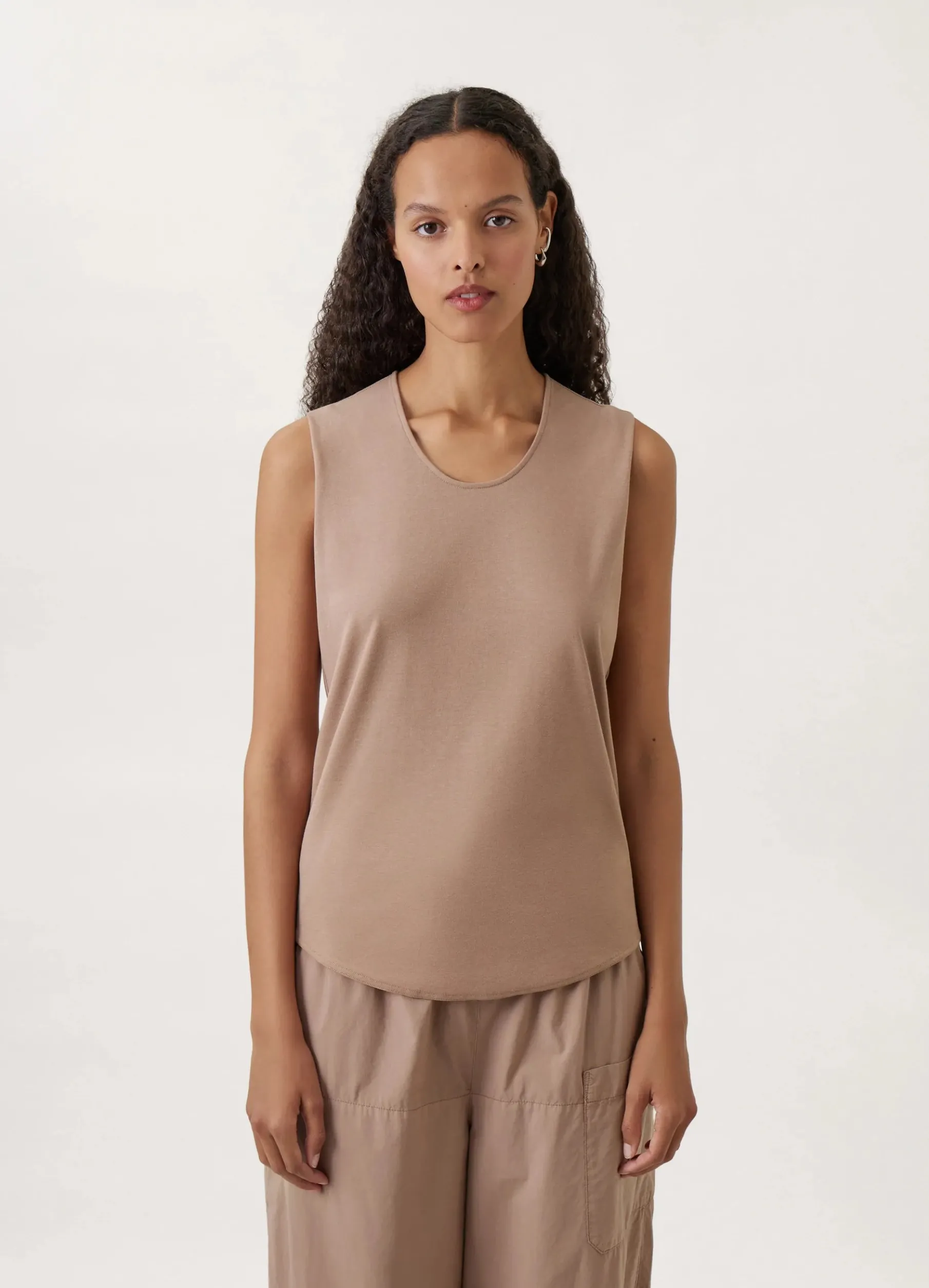 This Tank Top Is Made Of A Jersey Crepe Fabric With A Slightly Textured Look And A Dry Hand. Its Relaxed Fit Is Accented By An Open Uneck Collar, Singlepleated Shoulders And A Curved Hem.