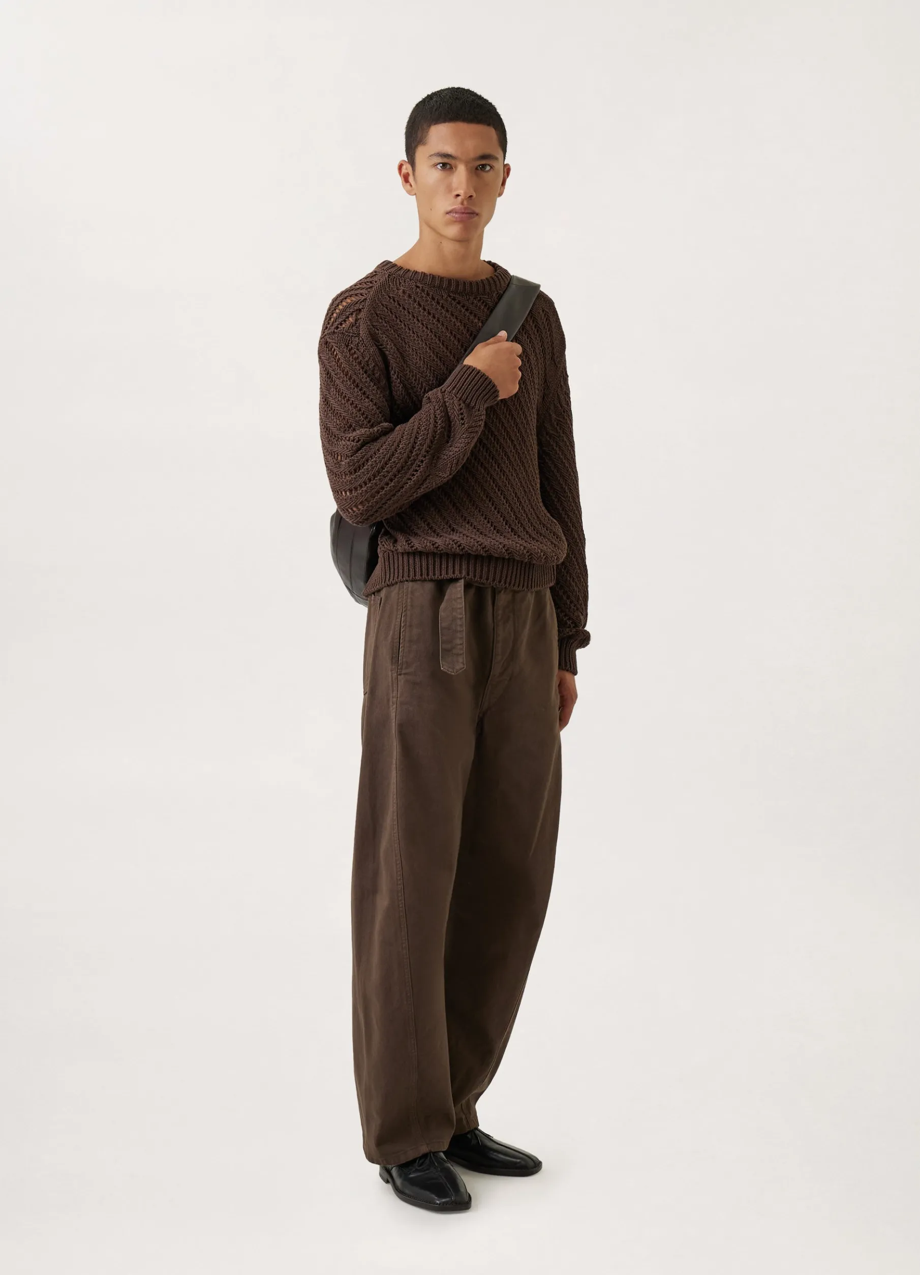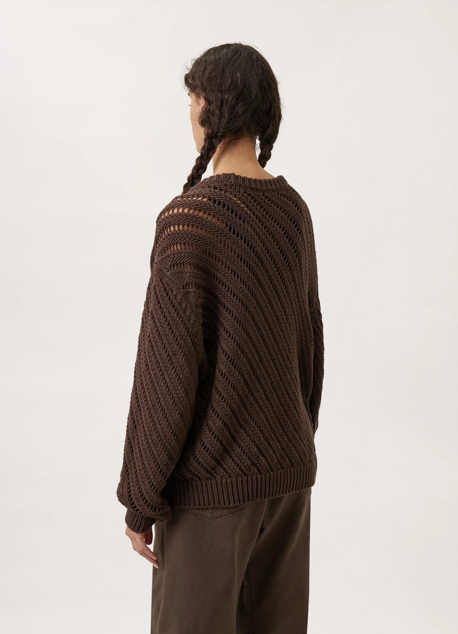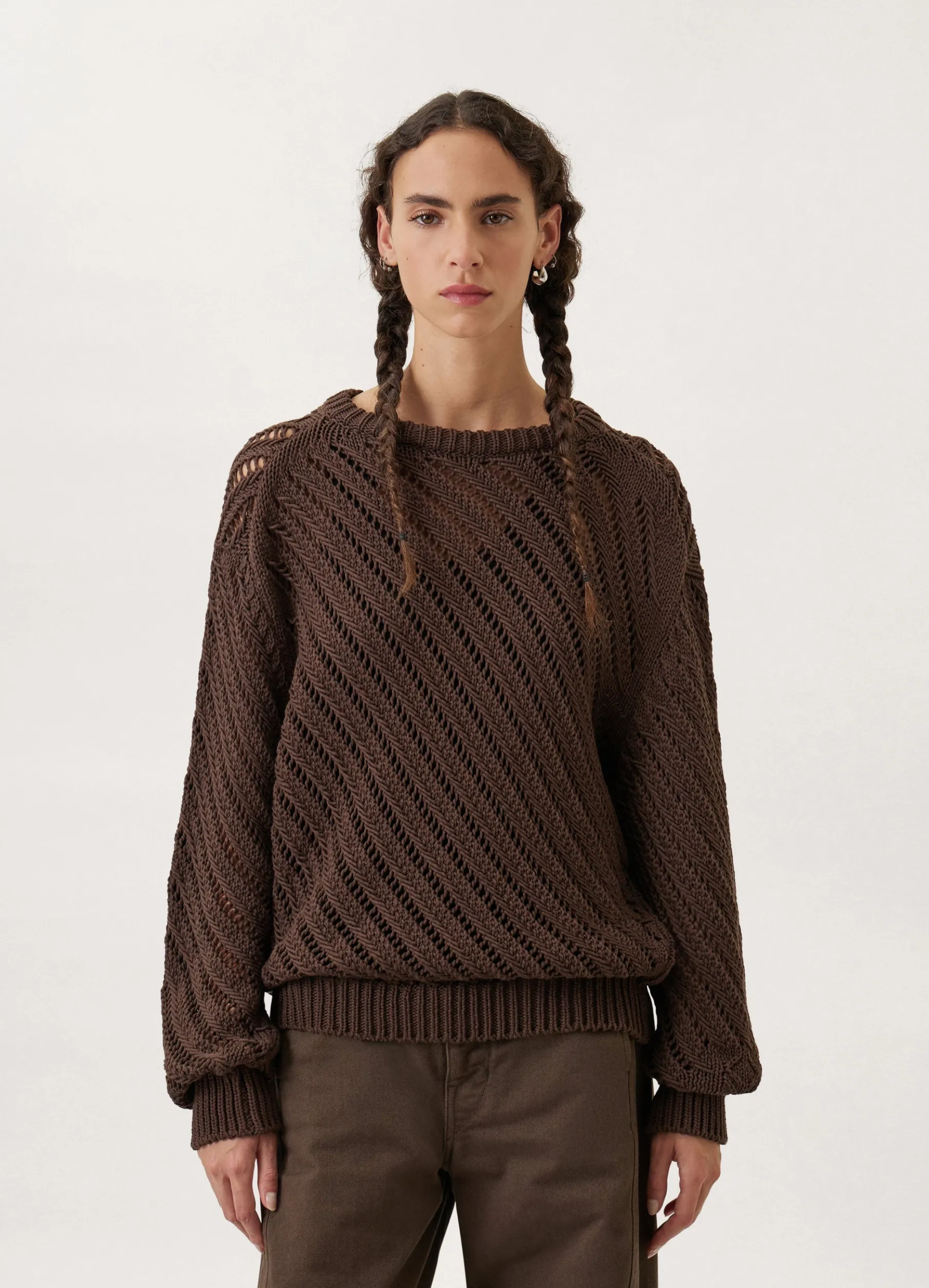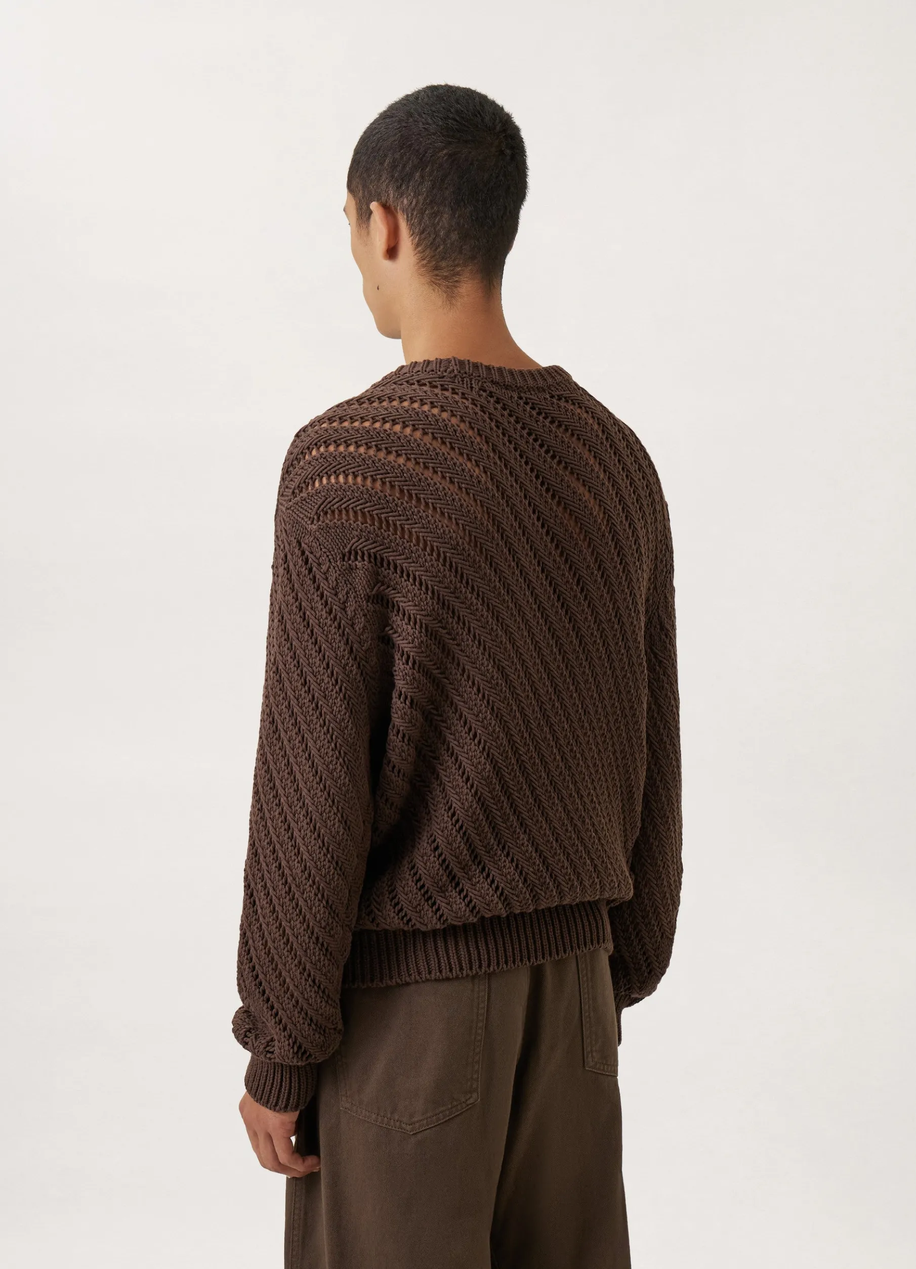 This Unisex Jumper Is Made Of Openwork Cotton With A Lightweight Feel, Knitted In A Diagonal Pattern. The Volume Is Relaxed And Features An Open, Sweatshirtinspired Crewneck With A Double Rib Collar. Its Shoulder Seams Are Tilted Slightly To The Front, Accentuating Its Rounded Back. A Decorative Stitch Design Lines The Bottom Of The Sleeves, Single Ribs Finishing The Hem And Cuffs.