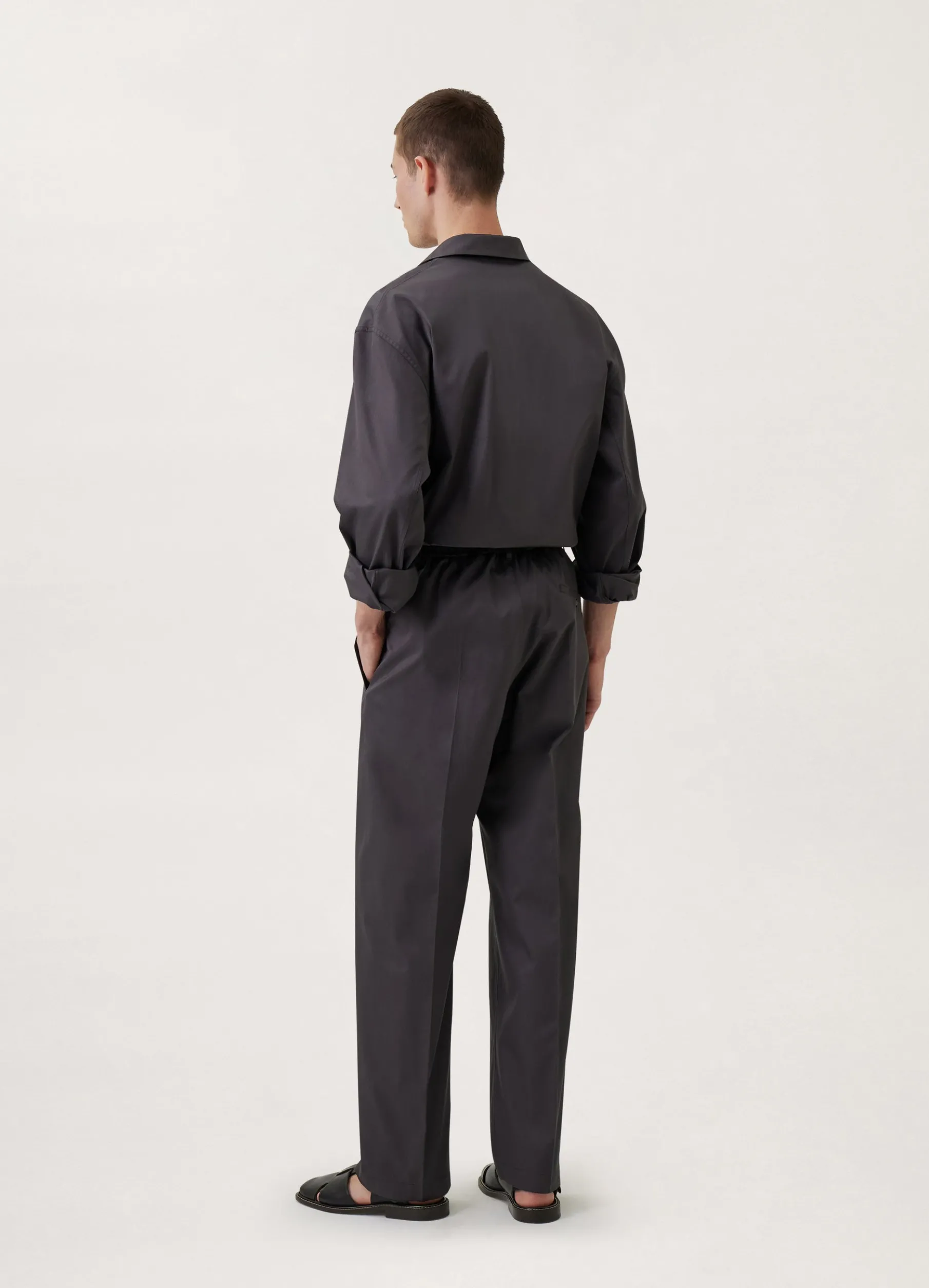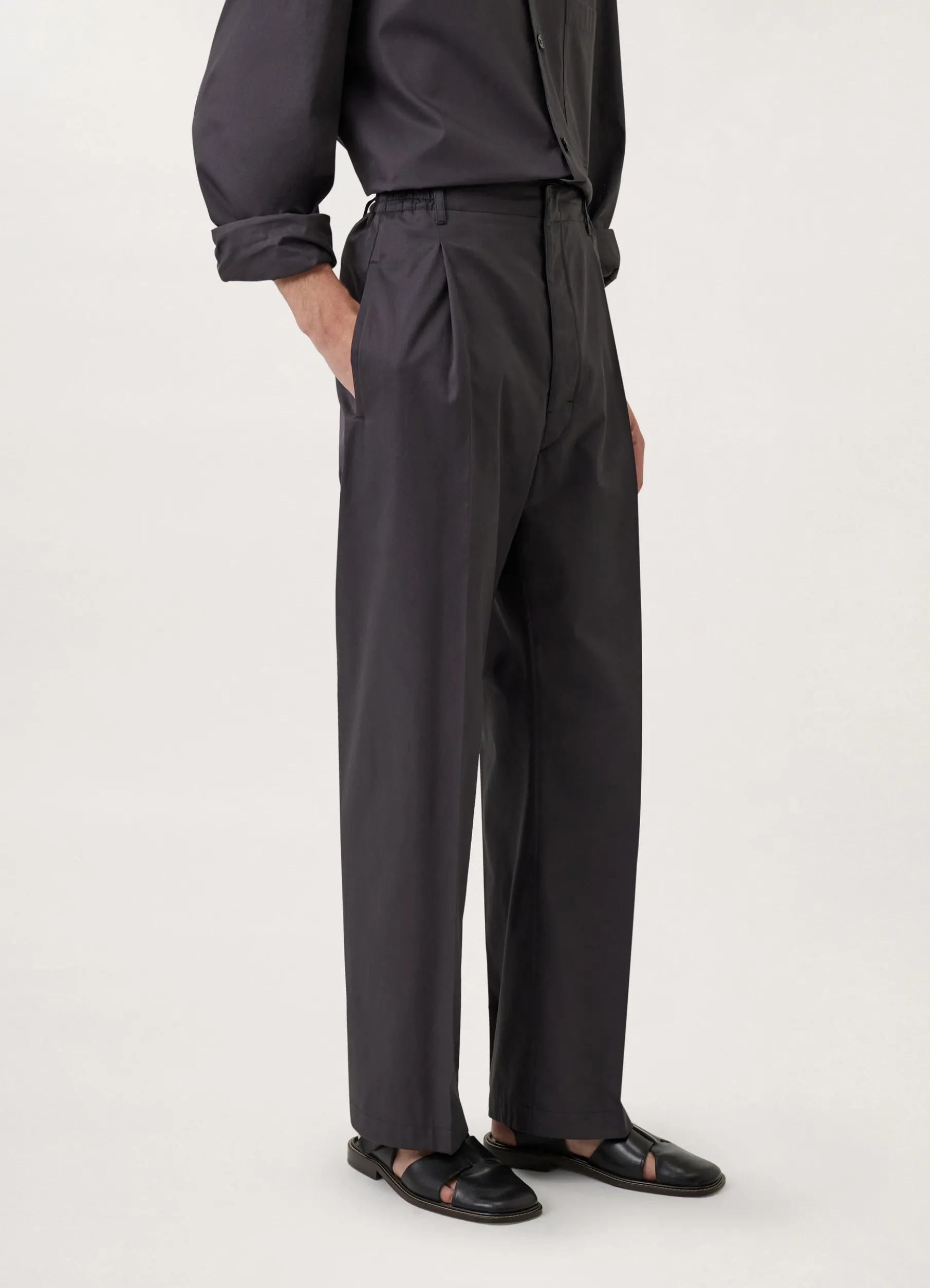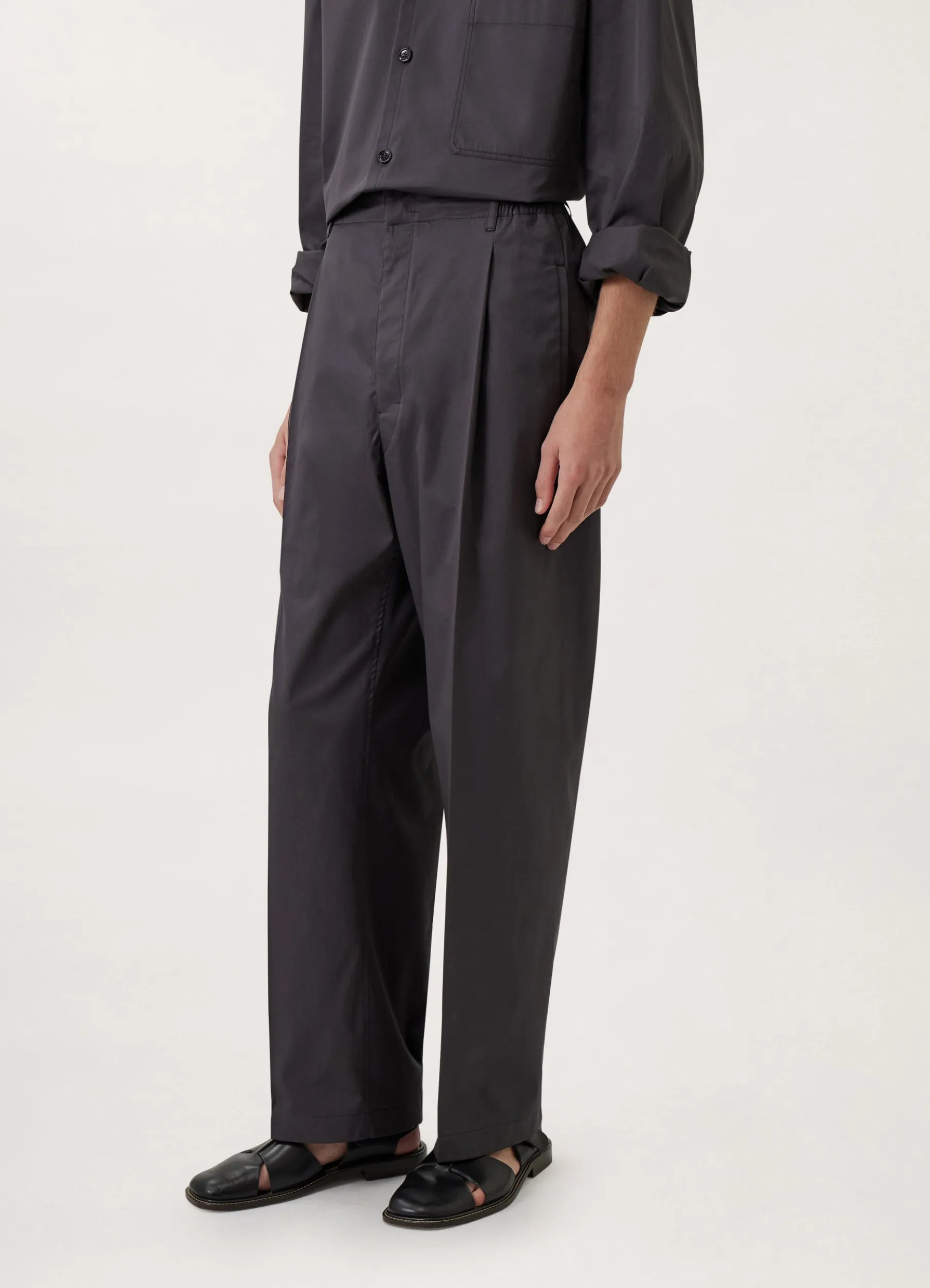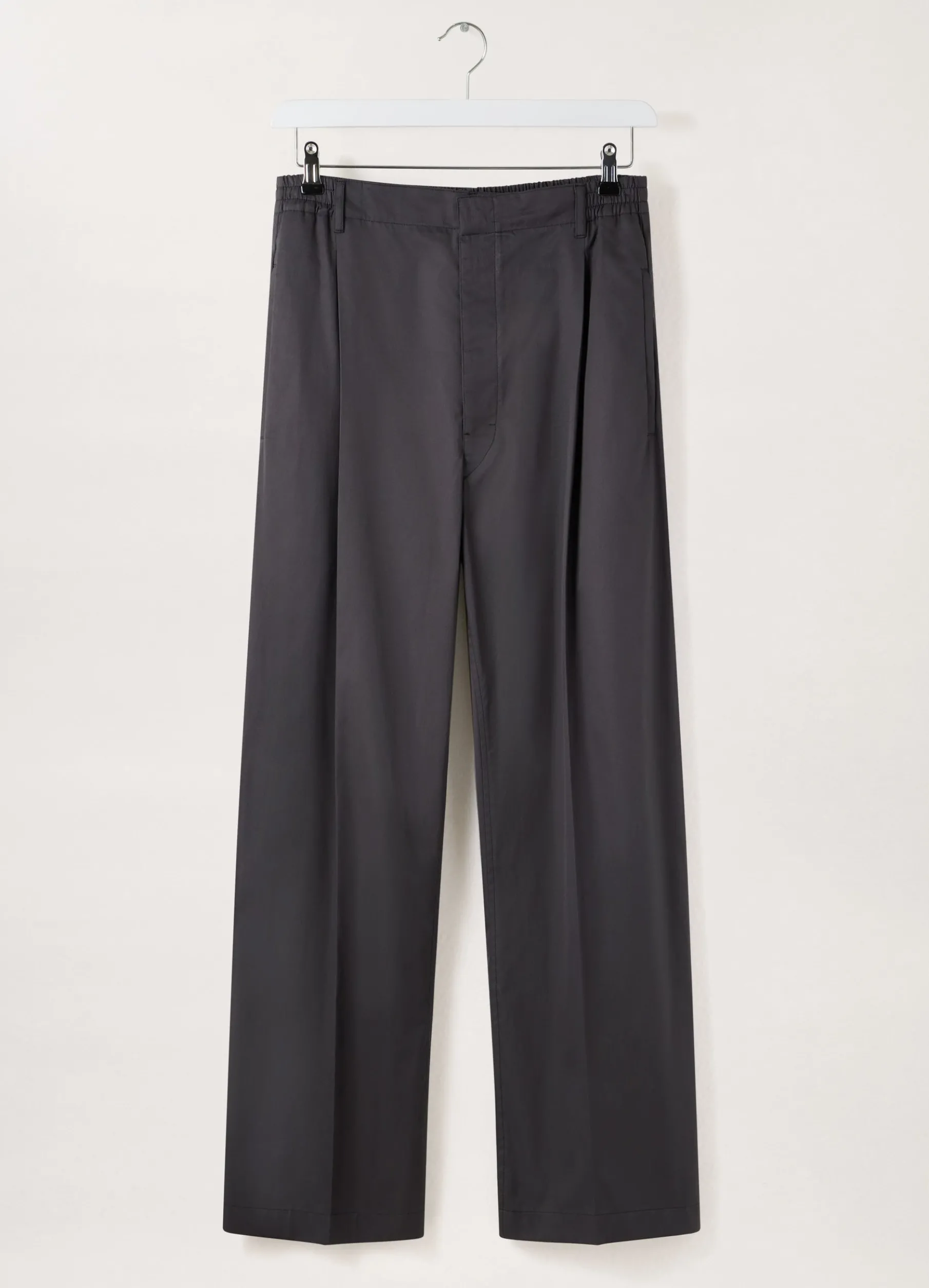 These Pants Are Made Of Light Cotton Twill With A Soft Hand That Is Slightly Shiny And A Smooth Drape. The Fit Is Relaxed And Midrise, Featuring A Single Pleat Below The Elasticated Waistband And Straight Legs With No Side Seam. Other Details Include Side Welt Pockets And A Back Welt Pocket.