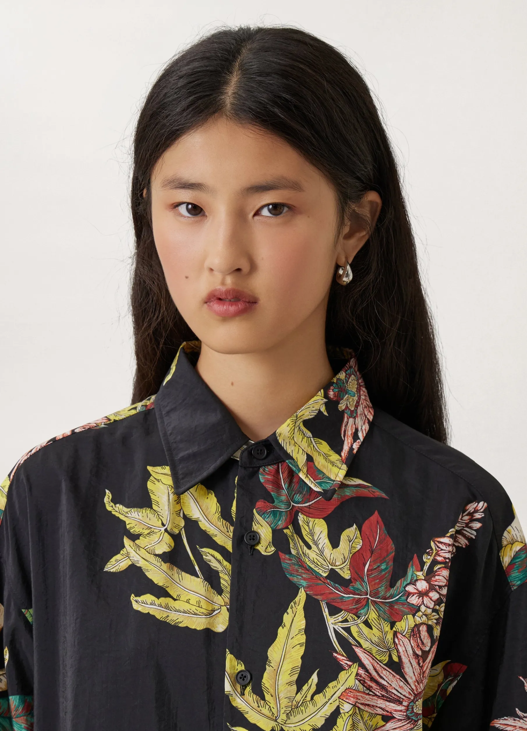 This Shirt Is Made Of Dry Silk, A Classic Lemaire Fabric With A Soft Hand And Tonic Texture That Has Been Printed With A Bloom Of Tropical Flowers. It Has A Relaxed, Elongated Fit, With A Pointed Collar And A French Placket. Other Details Include Adjustable Angled Cuffs And A Rounded Hem.