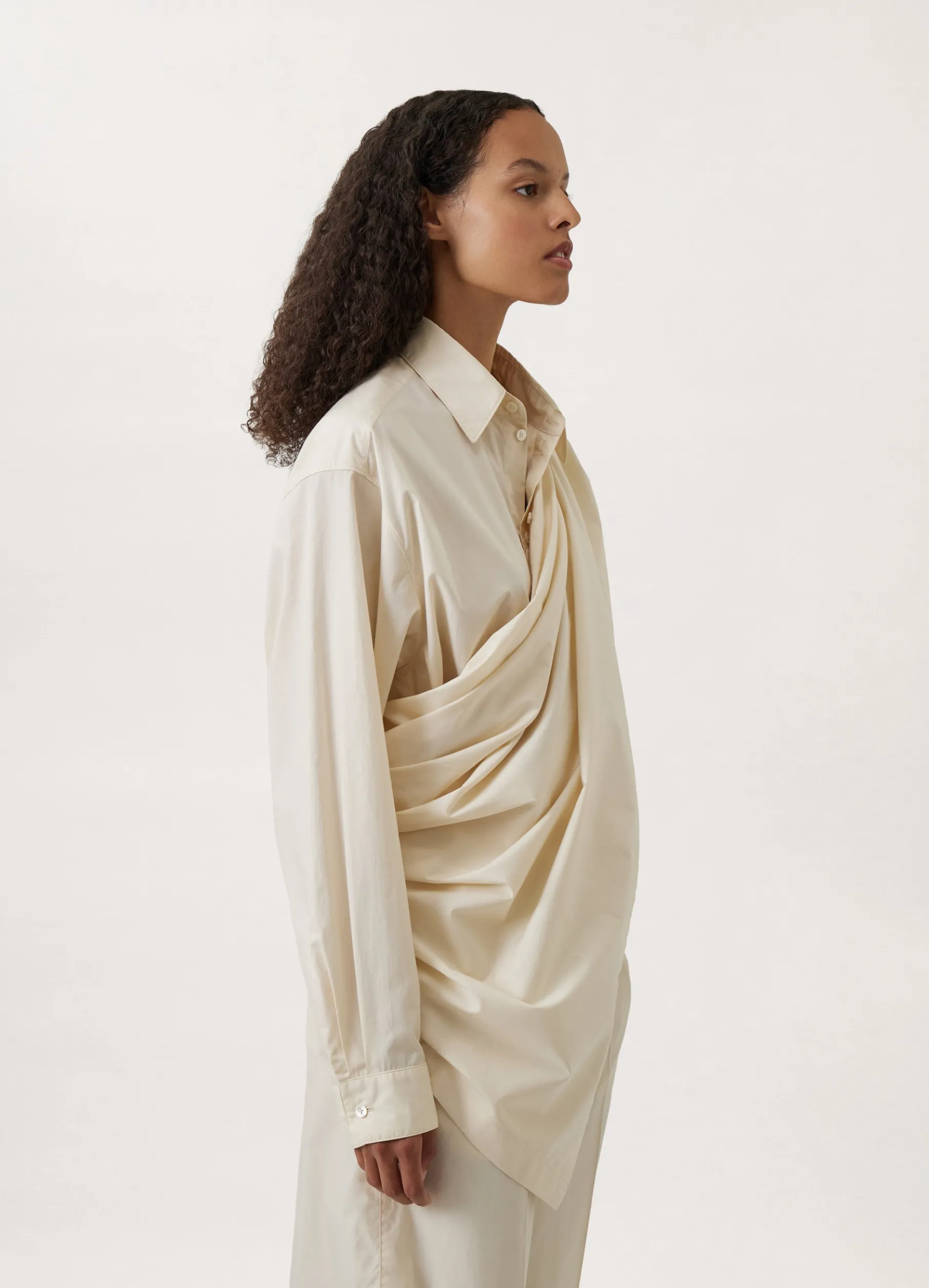 This Dress Is Made Of A Cotton Poplin That Is Lightweight With A Satinlike Finish. This Ultraconvertible Style Is Built Off A Straight, Loose Shirt. Its Deconstructed Fit Features Fully Slit Sides, Buttons Along The Shoulder And Side Seams Allowing Either Front Panel To Bewrapped Over The Otheror Draped Over One Shoulderto Create An Asymmetric Volume.