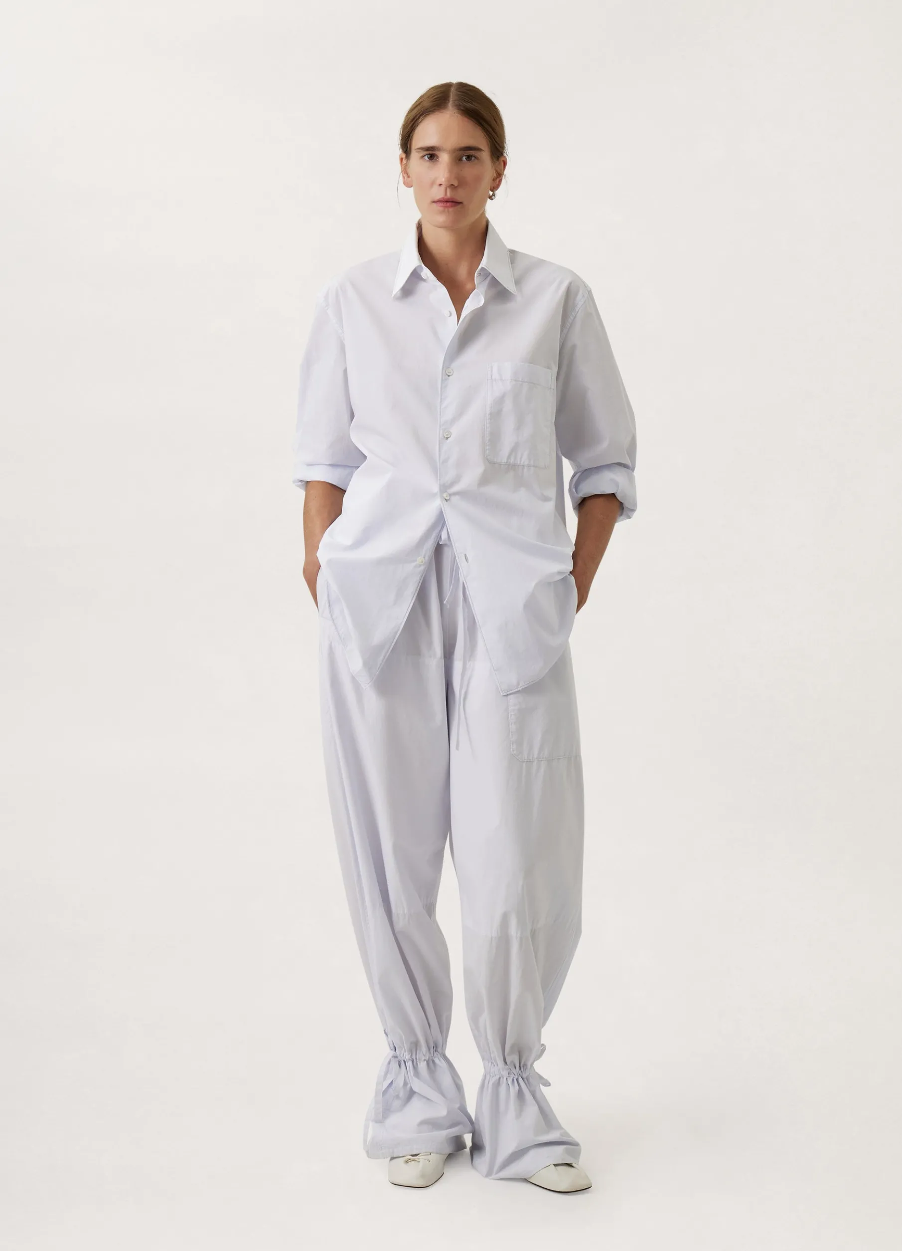 This Unisex Shirt Is Made Of Compact Cotton, Woven Into A Waterrepellent Twill That Is Soft And Malleable. It Has A Straight Fit With A Soft Construction Accented By Its Convertible Collar, French Placket And Slightly Rounded Hem. A Single Chest Patch Pocket, Adjustable Angled Cuffs With Double Pleats And A Back Yoke Complete Its Classic Details.