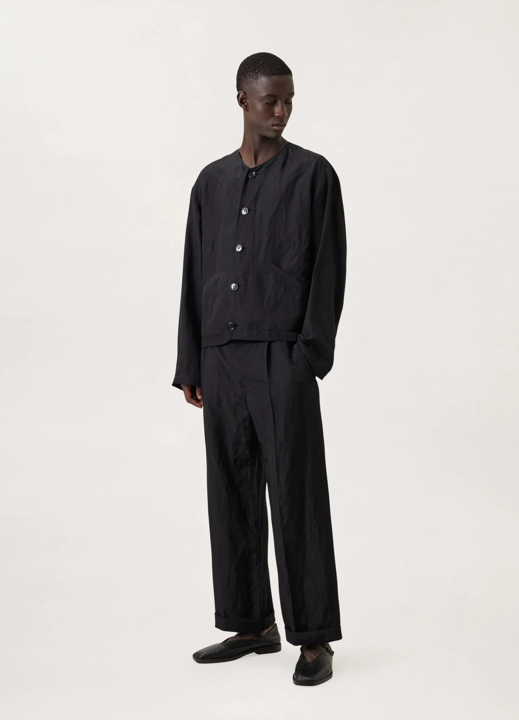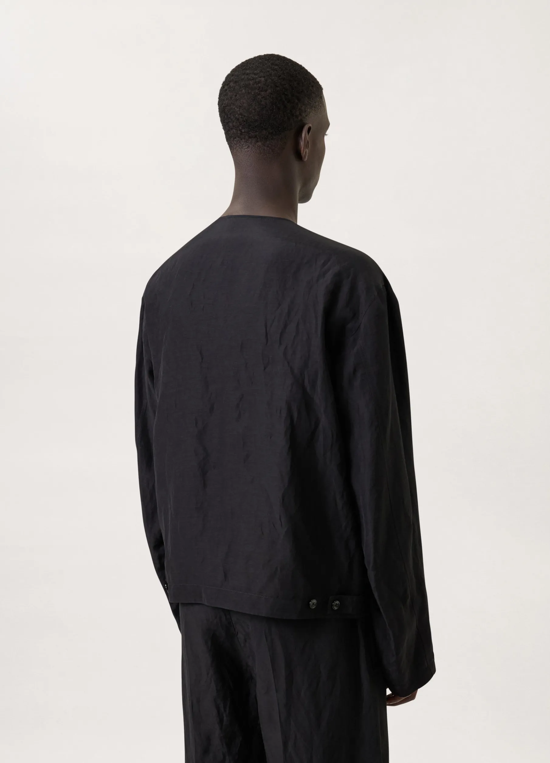 This Blouson Is Made Of A Lightweight Linen Viscose Blend With A Fluid Drape, Lending Itself Well To Soft Tailoring. It Has A Relaxed Fit With A Collarless, Slightly Vneckline And Dropped Shoulders. Other Utility Details Include Two Angled Welt Pockets, Two Slanted Interior Pockets, And A Fully Lined Interior For Added Comfort.