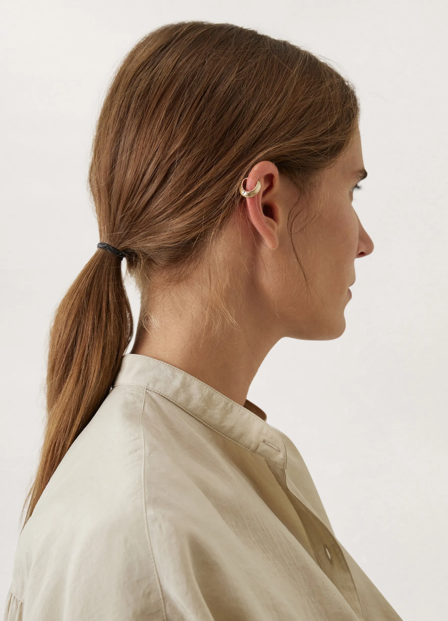 The Small Unisex Drop Earcuff Is Made Of Bronze With A Gold Or Silver Finish. It Is Shaped Like A Falling Drop With Slightly Angular Edges. It Features A Small Concealed Hinge To Adjust It To The Back Of The Ear.
