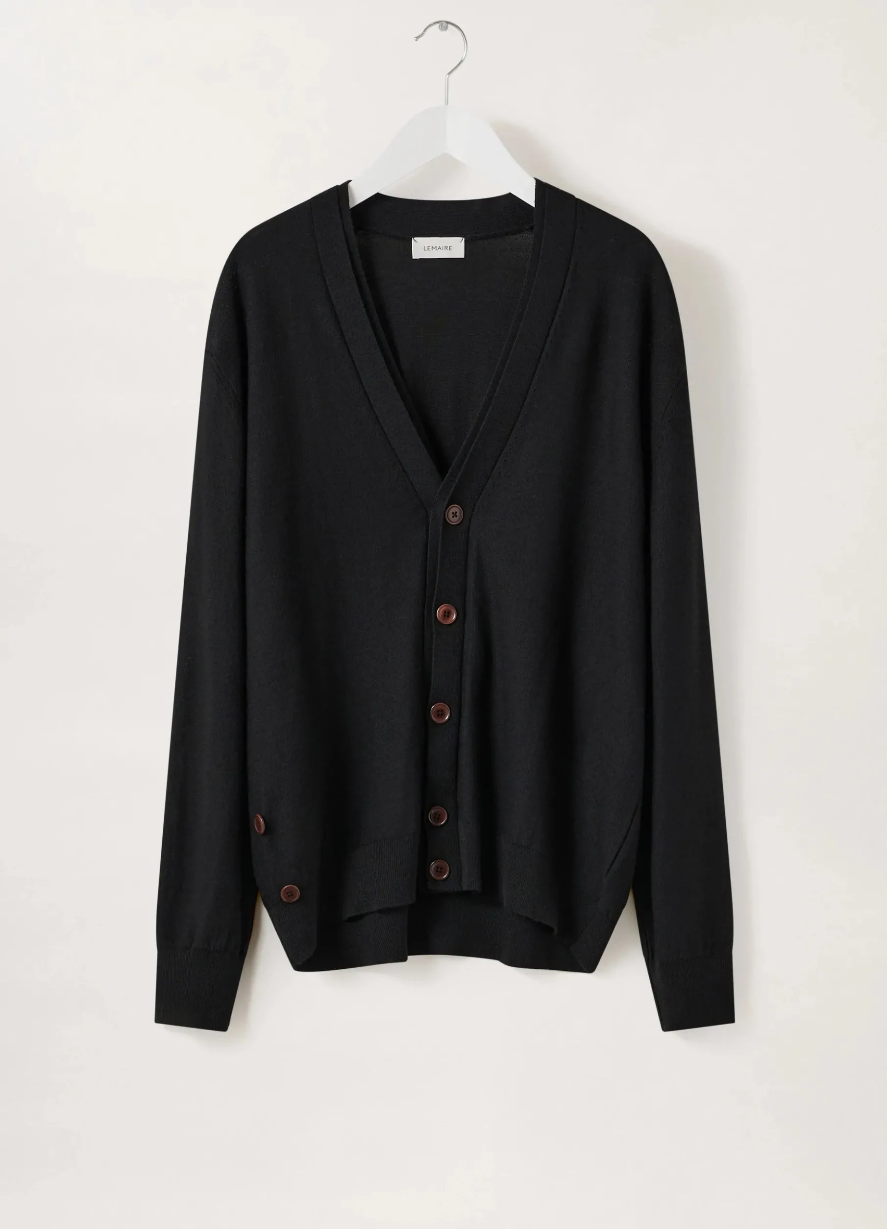 This Cardigan Is Made Of A Merino Blend With A Dry Hand And A Slightly Heathered Appearance. Based On Lemaire’s Twisted Staples, This Regular Fit Cardigan Features An Asymmetric Button Placket That Closes On The Side Seam, Wrapping Around The Waist. A Doublelayer Placket And Insideout Seams Complete Its Details.