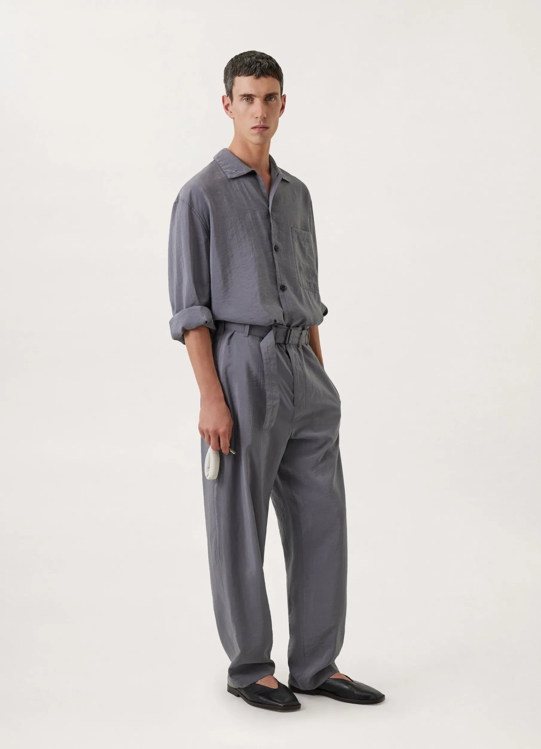These Pants Are Made Of Dry Silk, A Classic Lemaire Fabric With A Soft Hand And Tonic Texture. They Are Midrise, With A Grownon Waist That Is Adjustable With A Removable Belt, Extending Down Into A Long, Loose Leg. Their Details Include Two Trench Pockets On Either Side And A Buttoned Welt Pocket On The Back.