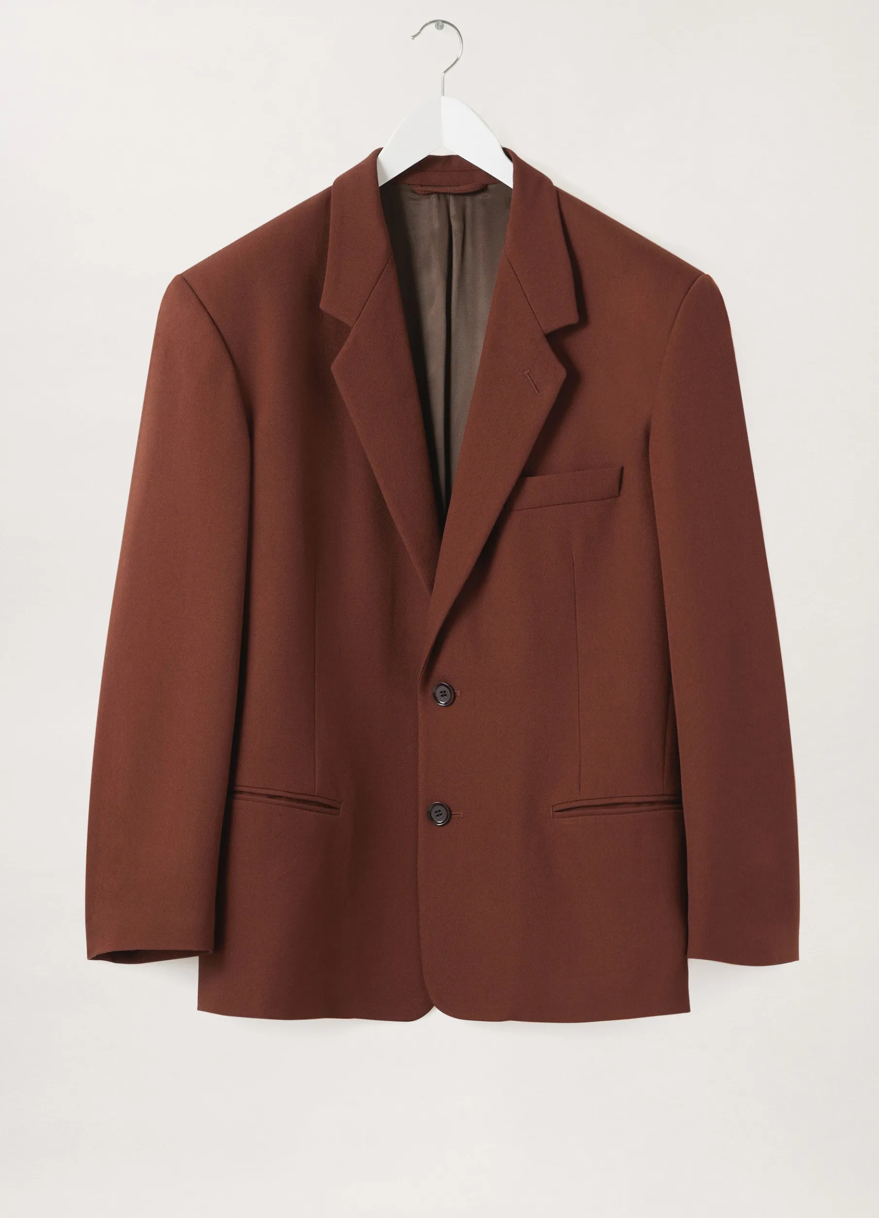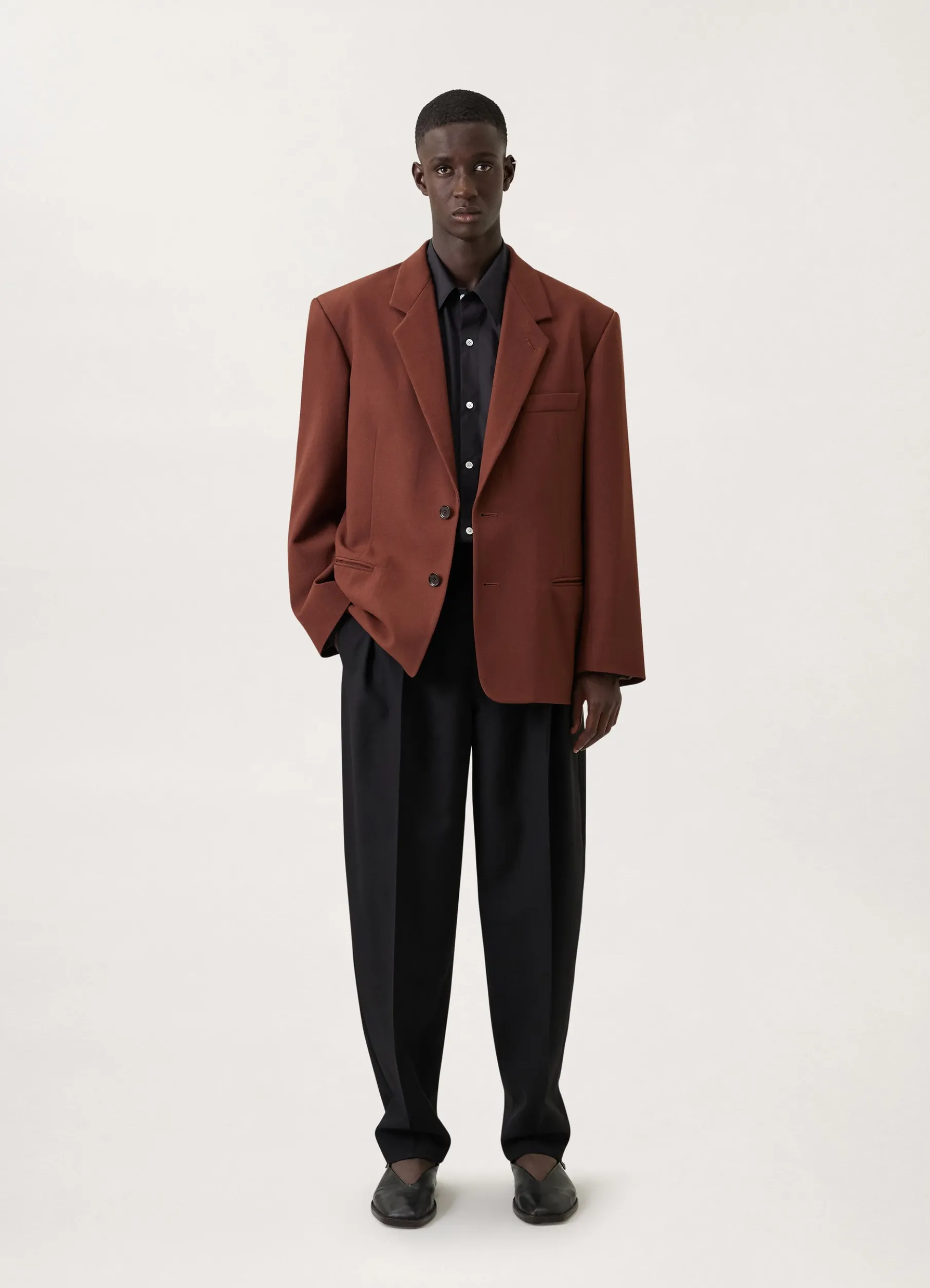 This Jacket Is Made Of Wool Gabardine With A Soft Hand And A Fluid Drape. Its Tailored Construction Has A Boxy Fit Accentuated By Long Shoulders And A Convertible Notched Lapel. This Piece Has A Two Button Closure, A Slanted Chest Welt Pocket, Two Jetted Pockets, And Is Fully Lined In Cotton.