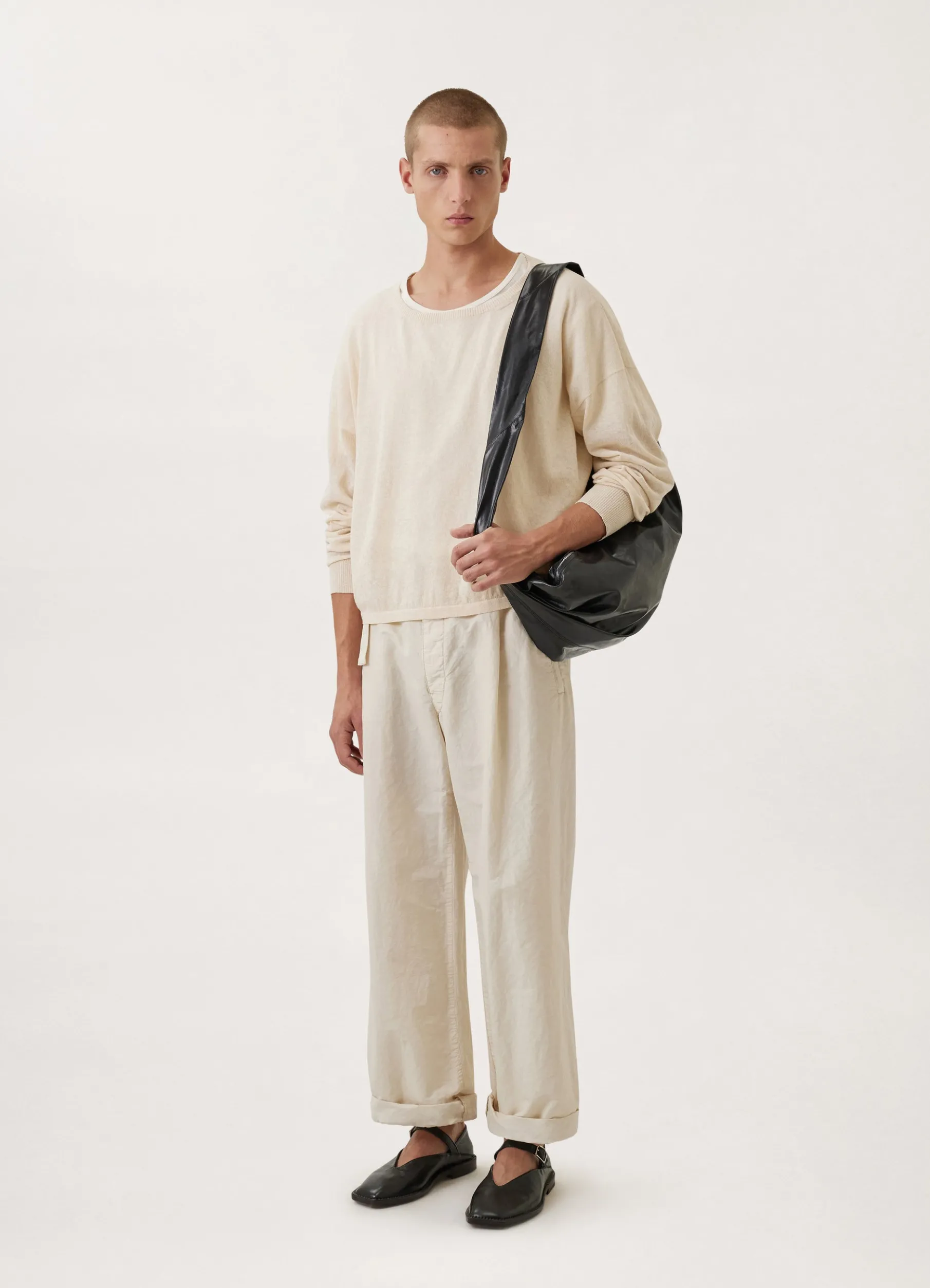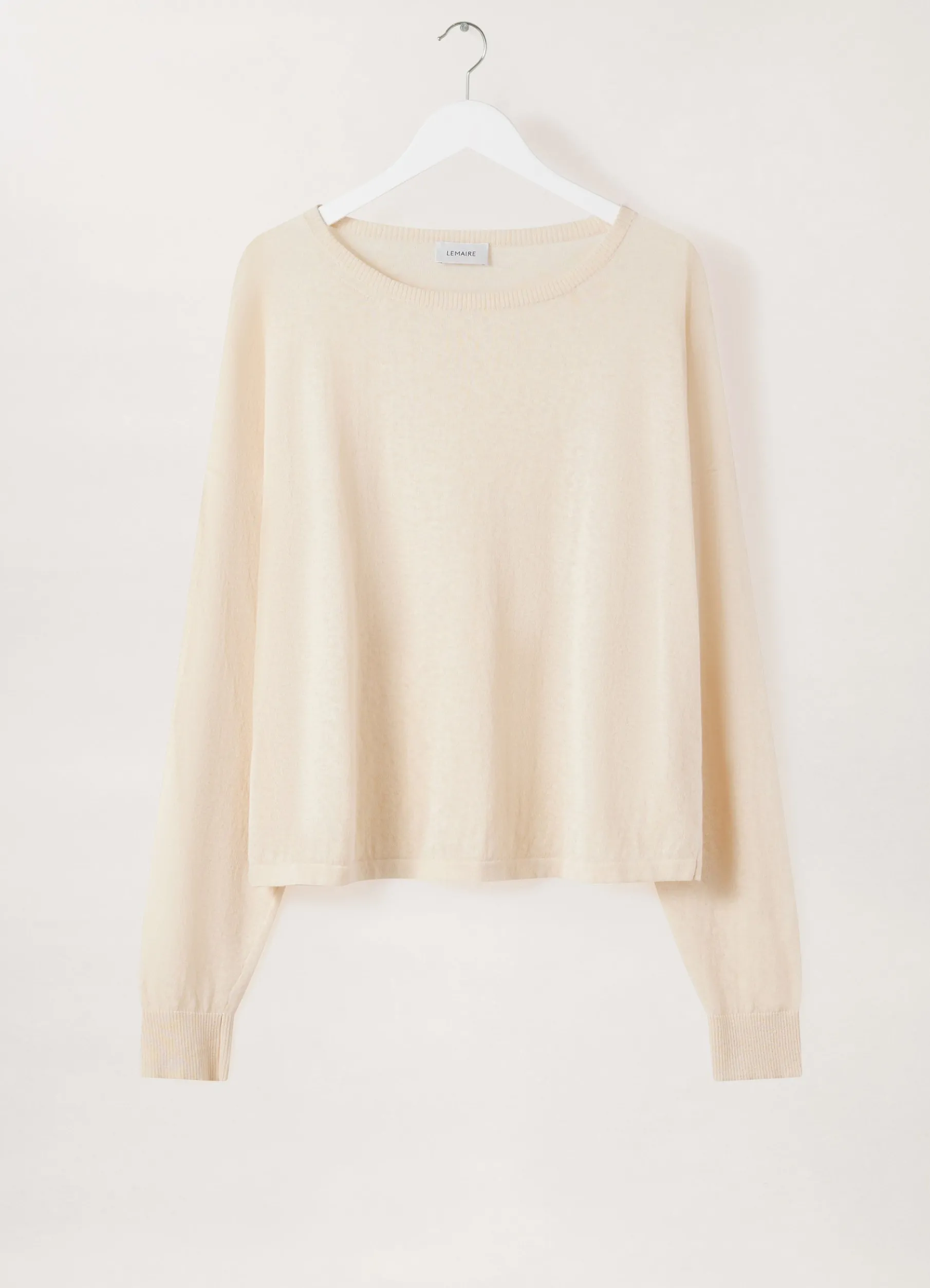 This Sweater Is Made Of A Fine Cotton Linen Blend With An Irregular Texture That Is Slightly Transparent. Its Proportions Are Boxy And Slightly Cropped, With A High And Flat Boatlike Neck And Dropped Shoulders. Tubular Rib Finishes The Collar, Cuffs And Hem.