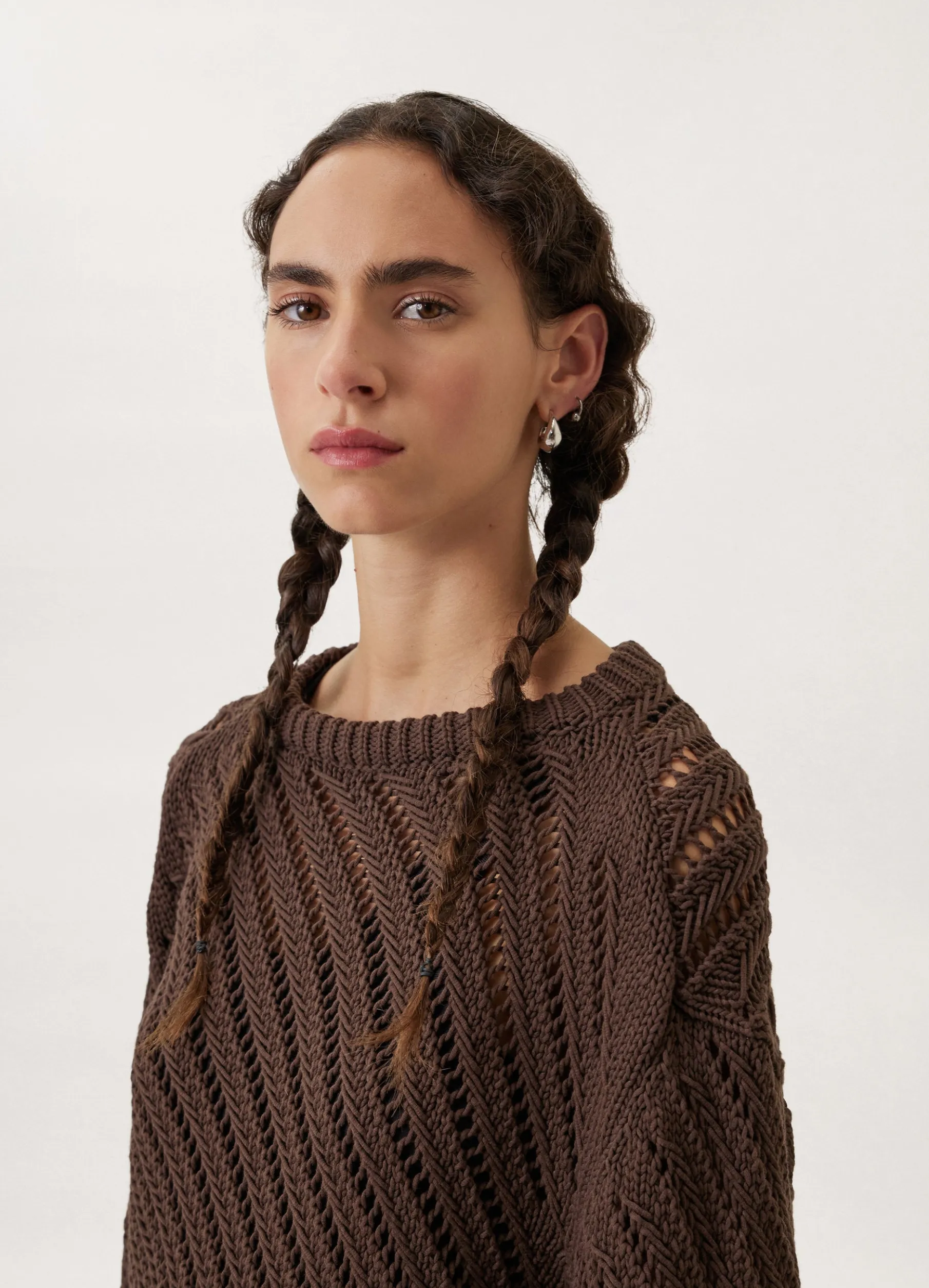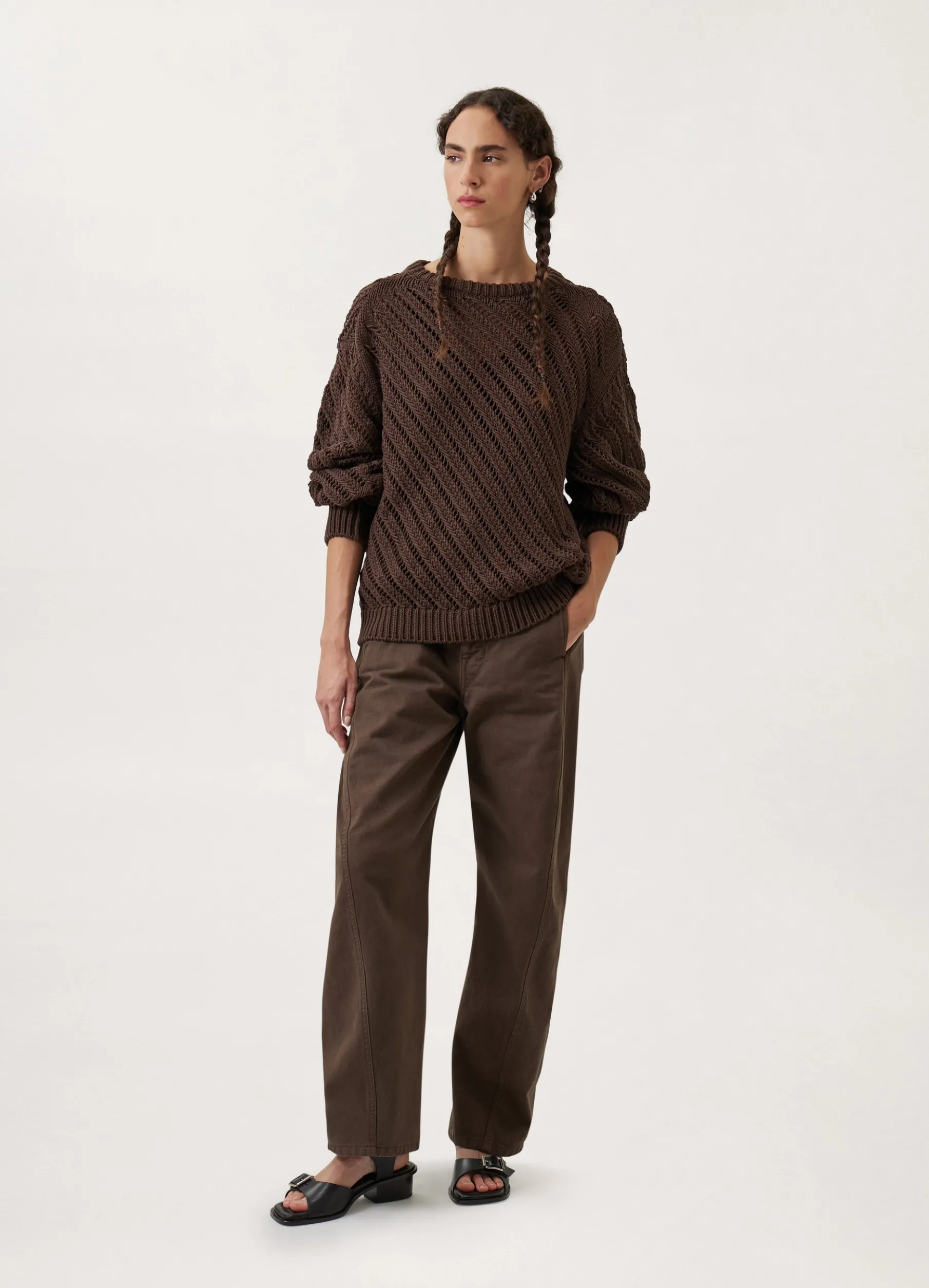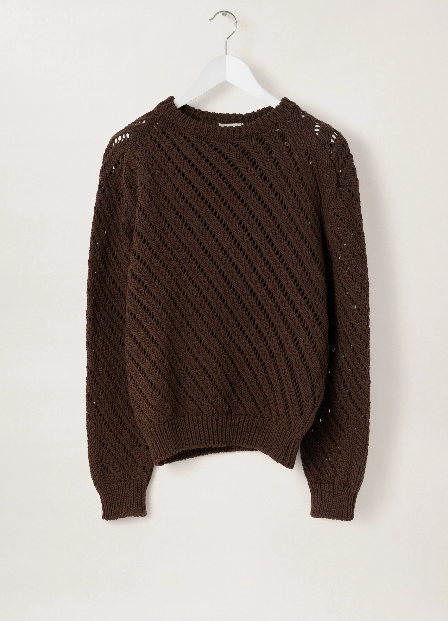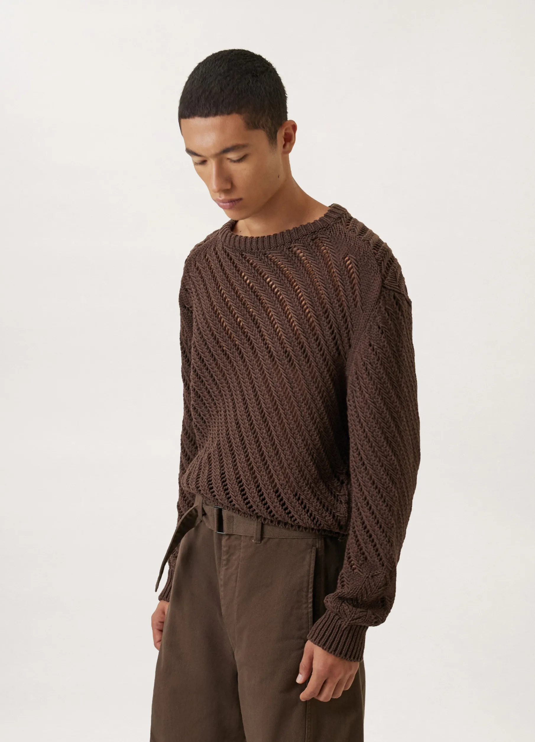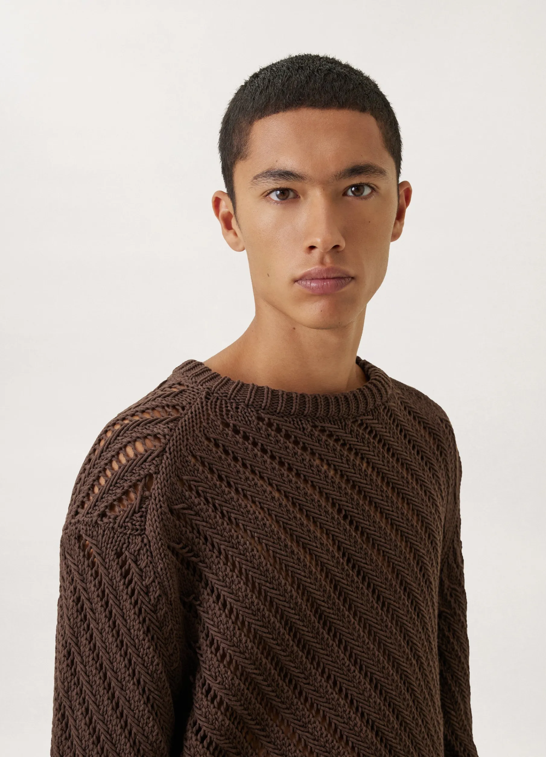 This Unisex Jumper Is Made Of Openwork Cotton With A Lightweight Feel, Knitted In A Diagonal Pattern. The Volume Is Relaxed And Features An Open, Sweatshirtinspired Crewneck With A Double Rib Collar. Its Shoulder Seams Are Tilted Slightly To The Front, Accentuating Its Rounded Back. A Decorative Stitch Design Lines The Bottom Of The Sleeves, Single Ribs Finishing The Hem And Cuffs.
