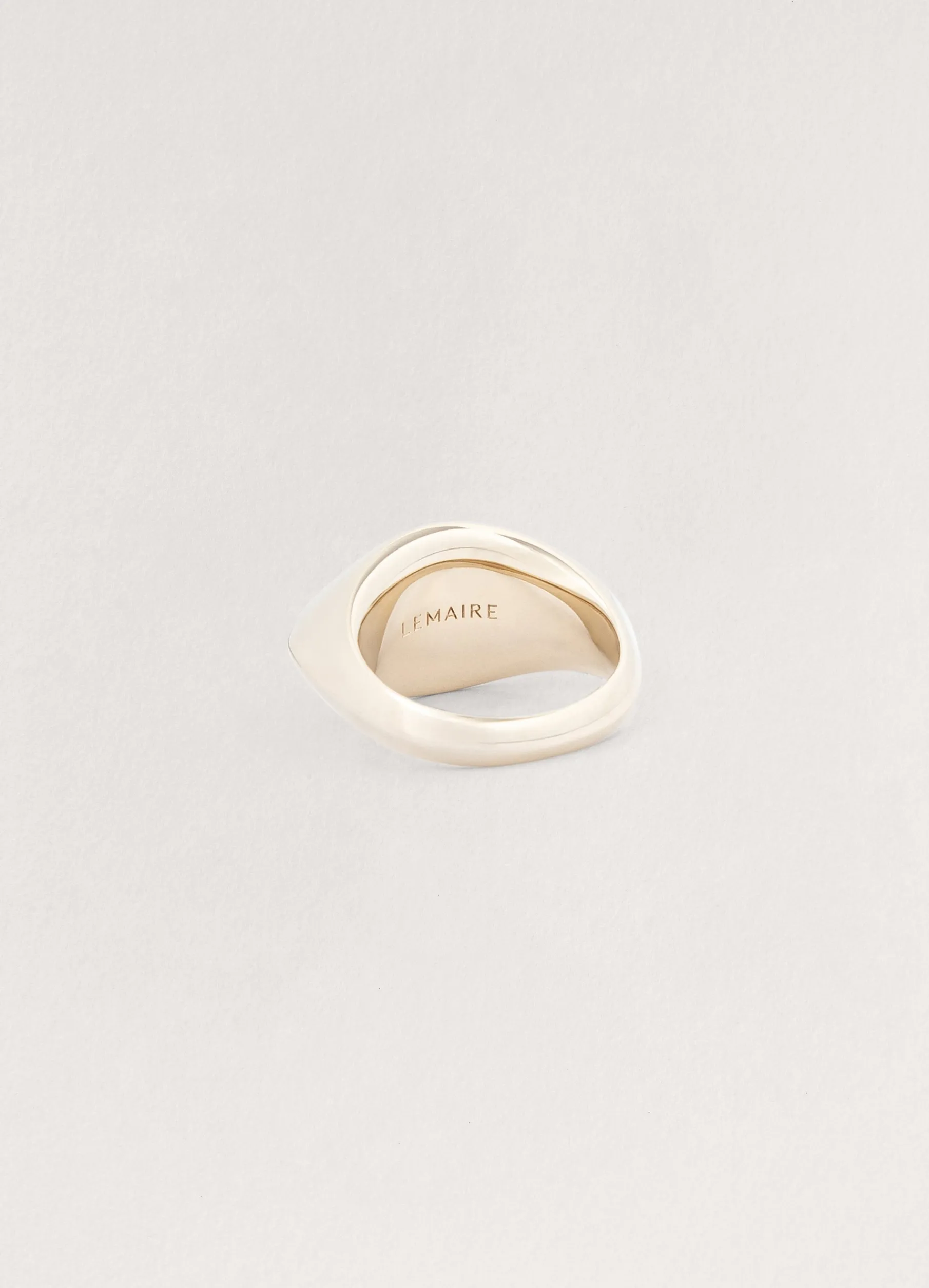 The Drop Ring Is Made Of Bronze With A Gold Or Silver Finish And Is Shaped Like A Drop With Slightly Angular Edges.