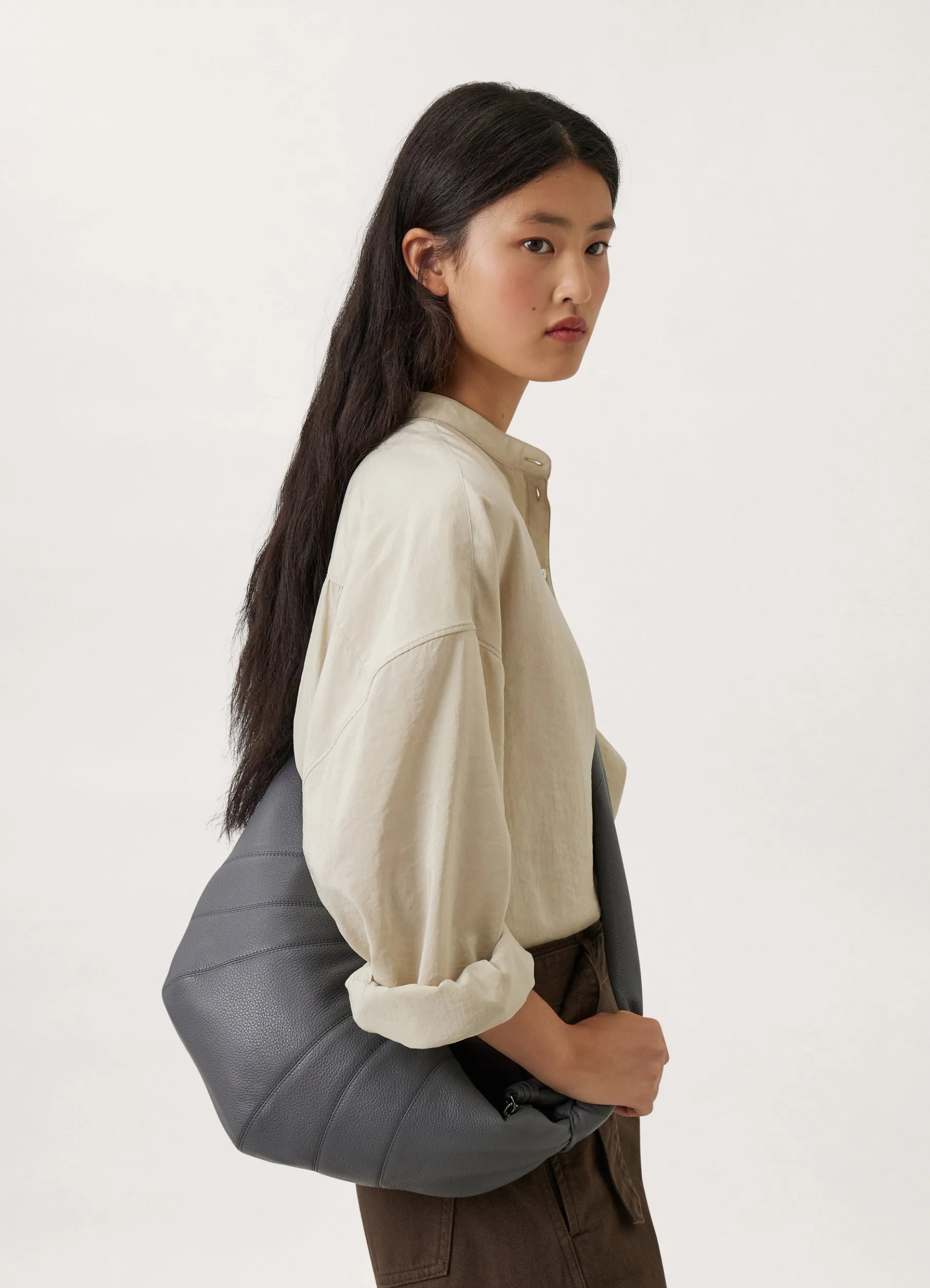 This Classic Lemaire Bag Is Made Of Soft Grained Leather That Is Supple Yet Resistant. Inspired By The Shape Of A Croissant Pastry, The Bag’s Design Is Achieved Through An Assembly Of Topstitched Cutouts. It Features A Matching Looped Zip Puller And Side Knot Finishings, And Is Worn As A Shoulder Or Crossbody Bag.