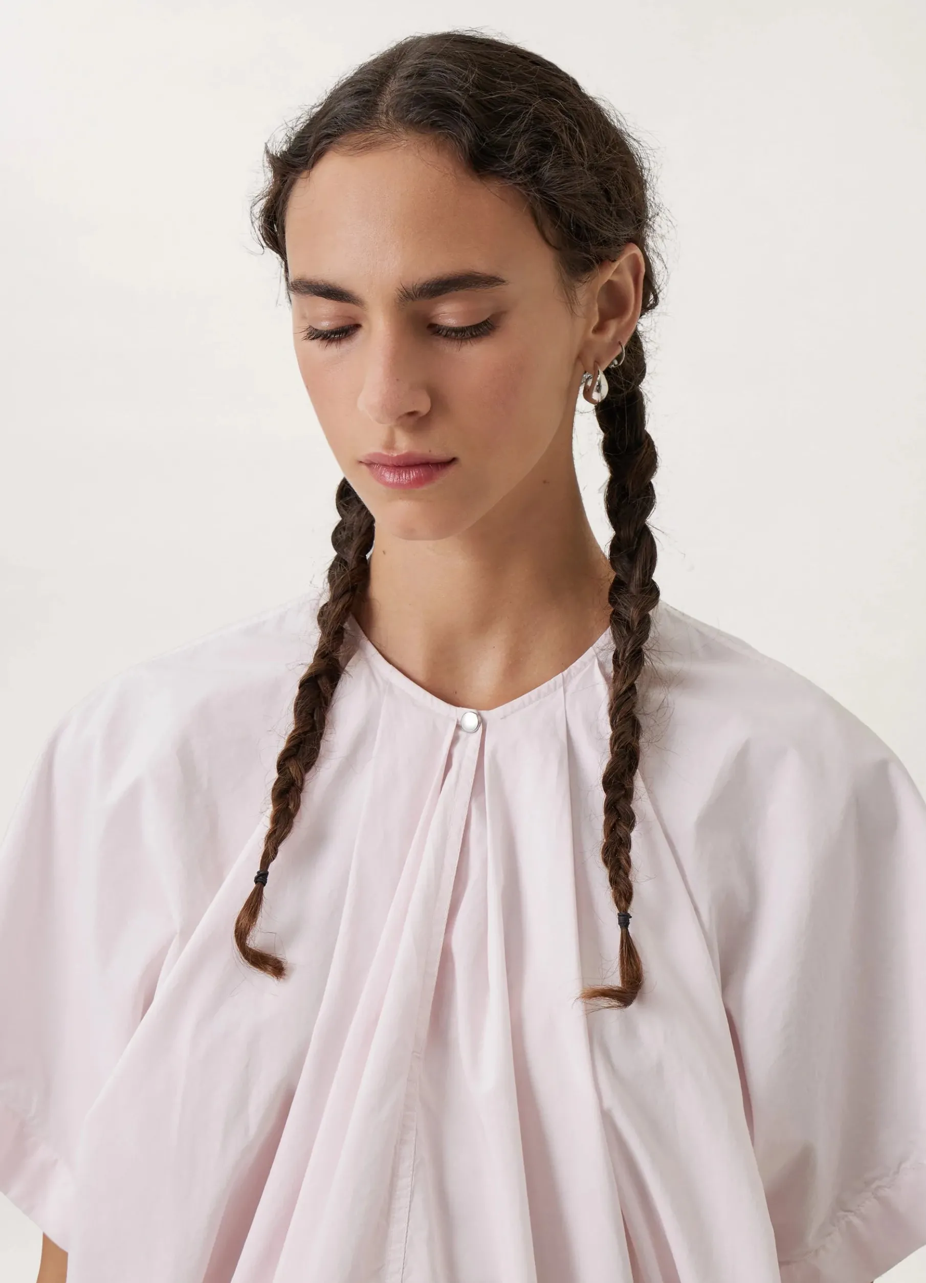 This Top Is Made Of Airy Cotton That Has Been Garment Dyed, Softening Its Hand. It Has A Loose, Balloon Like Shape Created By Its Pleated Keyhole Neckline And Its Wide Kimono Sleeves.