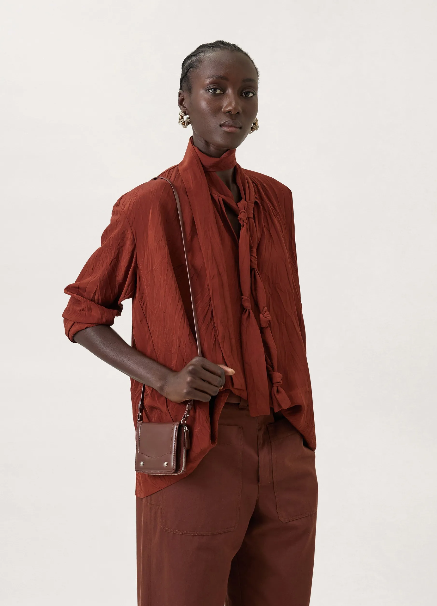 This Wallet Is Made Of Soft Grained Leather That Is Supple Yet Resistant. It Is Square Shaped, With Curved Embossed Details And Stitching Around Its Border. It Is Composed Of A Zipped Wallet Attached To A Removable, Adjustable Strap That Can Be Worn Around The Neck Or As A Crossbody. It Features Card Slots As Well As Coin And Cash Pockets.