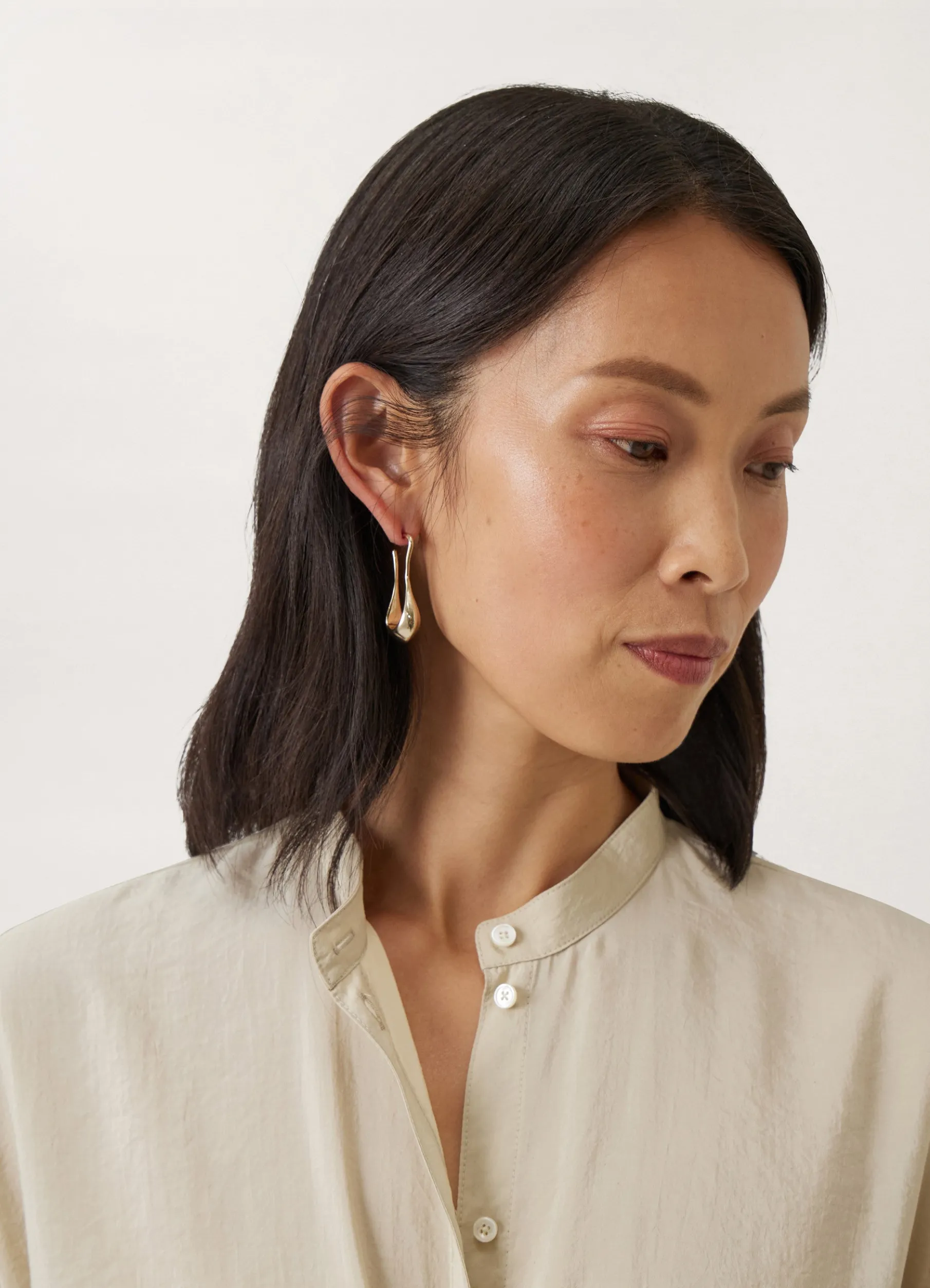 These Earrings Are Made From Bronze With A Gold, Silver Or Antique Bronze Finish And Are Shaped Like Two Small Falling Drops With Slightly Angular Edges.