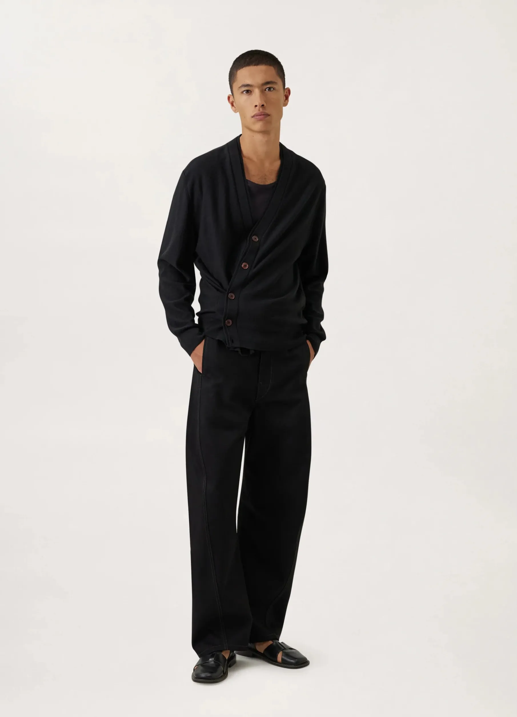 This Cardigan Is Made Of A Merino Blend With A Dry Hand And A Slightly Heathered Appearance. Based On Lemaire’s Twisted Staples, This Regular Fit Cardigan Features An Asymmetric Button Placket That Closes On The Side Seam, Wrapping Around The Waist. A Doublelayer Placket And Insideout Seams Complete Its Details.